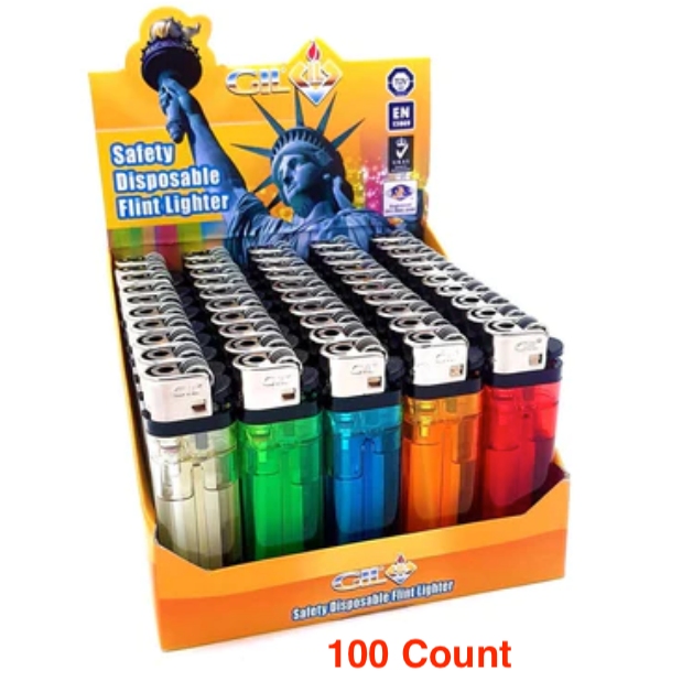 100 Count 2 Pack Premium Disposable Gil Lighters 2 x 50 Pack Mixed Colors