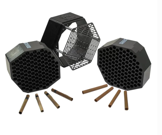 The interchangeable inserts hold 115 straight tubes and is available in the sizes 9mm/10mm/11mm/12mm/13mm/14mm style diameters.