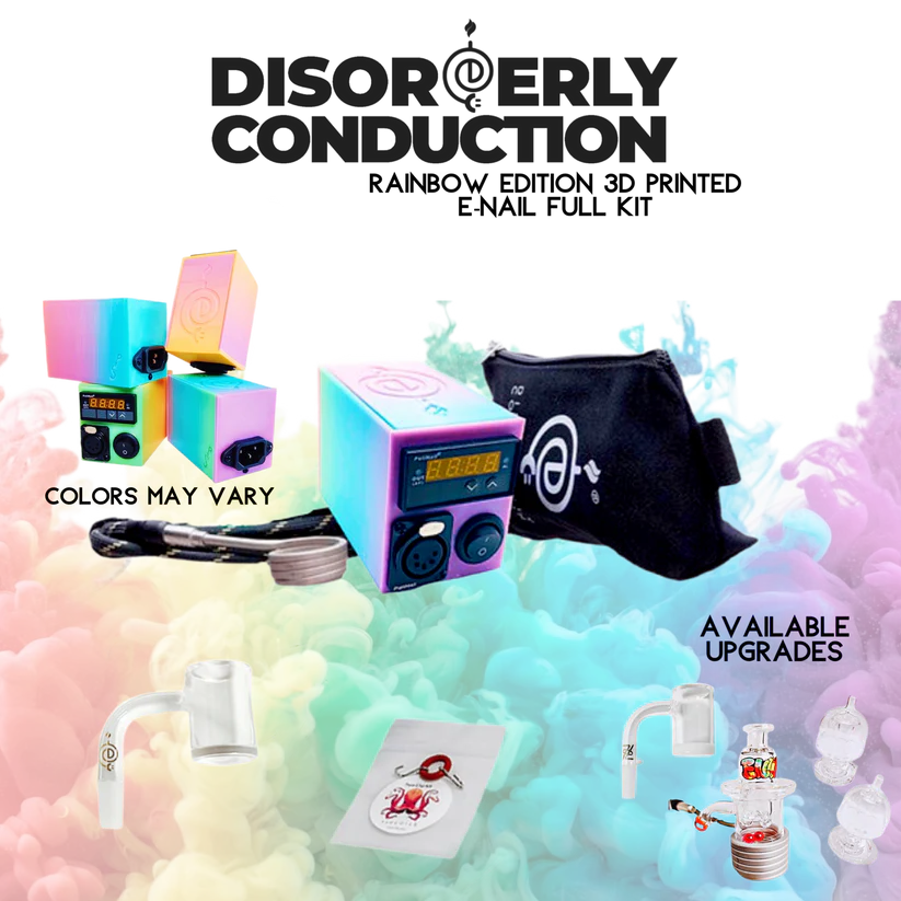 Our LIMITED EDITION DC 3D MULTI-COLOR E-Nail is our most budget friendly unit. The DC 3D E-Nail blends beauty, function, and size , with pops of COLORS. The DC 3D E-Nail by Disorderly Conduction is the best electronic nail on the market for vaporizing concentrates. Take full control over your DC 3D E-Nail by customizing your settings at a consistent temperature for optimal vaporization. NO MORE butane torch!